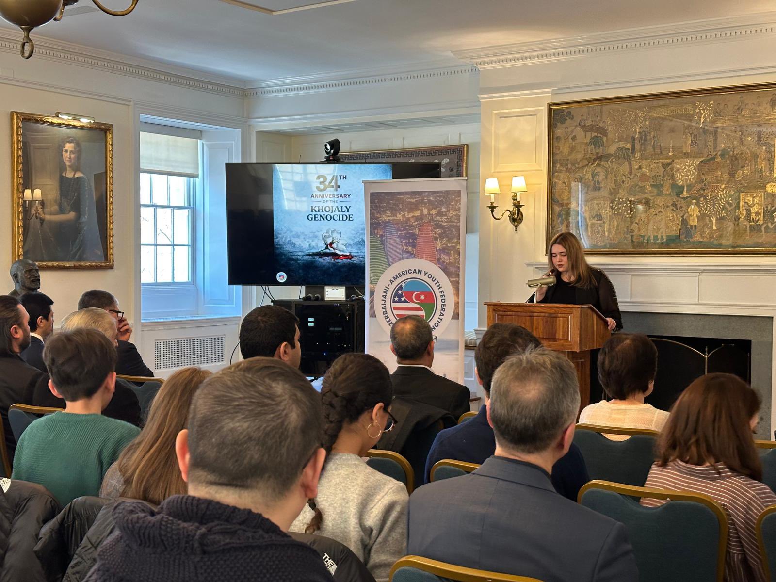 Azərbaycan Respublikasının Birləşmiş Millətlər Təşkilatı yanında Daimi Nümayəndəliyi Kolumbiya Universitetində keçirilən “Xocalı: İnsanlıq vasitəsilə Xatirəni Anmaq və Sülhü İrəlilətmək” adlı tədbirdə iştirak etmişdir. Tədbir Xocalı Soyqırımının 34-cü ildönümünün qeyd olunması məqsədilə Diasporla İş üzrə Dövlət Komitəsi və Azərbaycan-Amerika Gənclər Federasiyası tərəfindən təşkil edilmişdir.